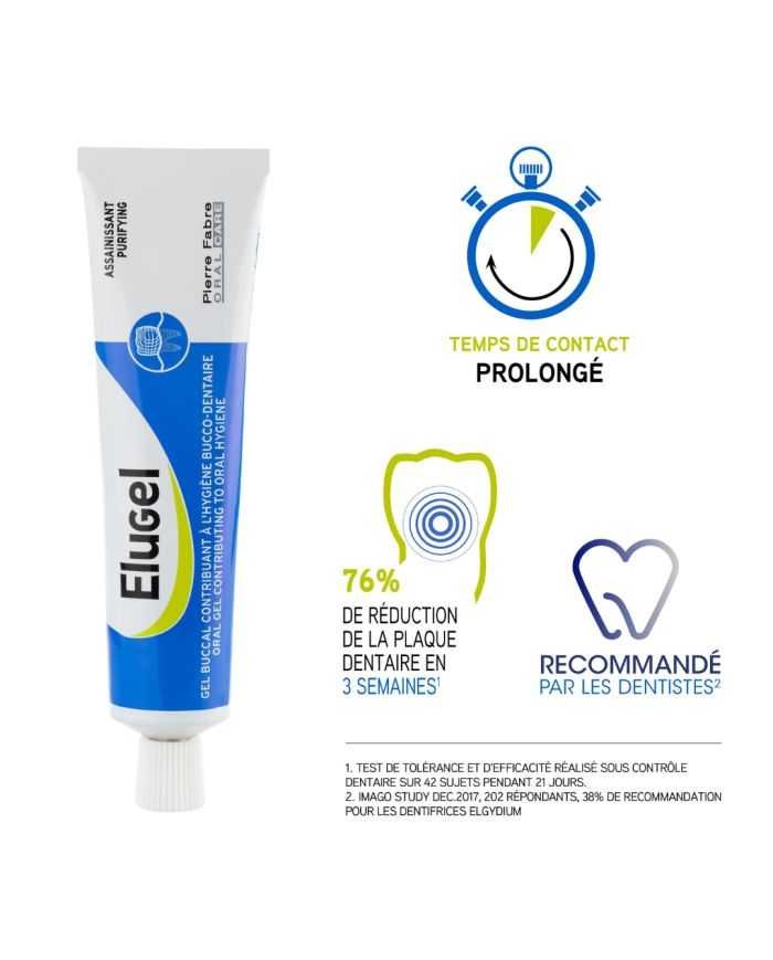 Elugel s’applique facilement et peut ĂȘtre utilisĂ© lorsqu’une hygiĂšne bucco-dentaire rigoureuse n’est pas possible. Il s’utilise en complĂ©ment des traitements parodontaux et implantaires*, en cas de gencives sensibles, ou chez les personnes n’ayant pas un brossage efficace. Son mode d’application permet un temps de contact prolongĂ© et une action ciblĂ©e. Contenant du digluconate de chlorhexidine (0,2 %) connu pour ses aux propriĂ©tĂ©s assainissantes, le gel buccal assainissant s’applique trois fois par jour sur la zone concernĂ©e, avec le doigt ou Ă l’aide d’une brosse Ă dents trĂšs souple.