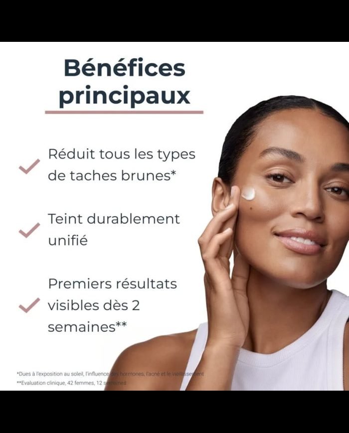 Le ThiamidolÂź, brevetĂ© et cliniquement prouvĂ©, agit Ă  la source de l‘hyperpigmentation en rĂ©gulant la production de mĂ©lanine dĂšs le premier jour. Des rĂ©sultats visibles apparaissent dĂšs deux semaines d’utilisation rĂ©guliĂšre. Ce principe actif est efficace sur toutes les carnations et contribue Ă  prĂ©venir la rĂ©apparition des taches brunes, qu’elles soient dues au soleil, aux hormones, ou au vieillissement.