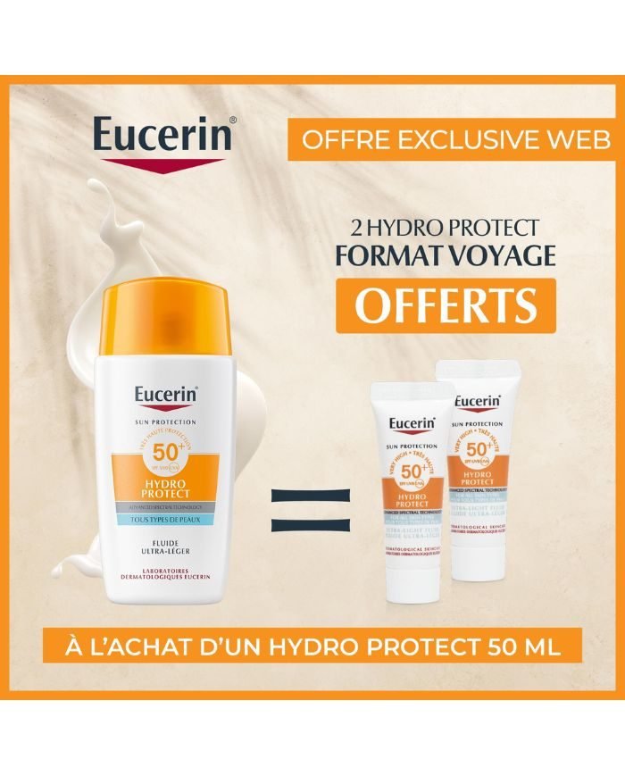EUCERIN OFRE WEB HYDRO PROTECT FLUIDE ULTRA LEGERSPF 50+ TOUS TYPES DE PEAUX + 2 HYDRO PROTECT FORMAT VOYAGE OFFERTS