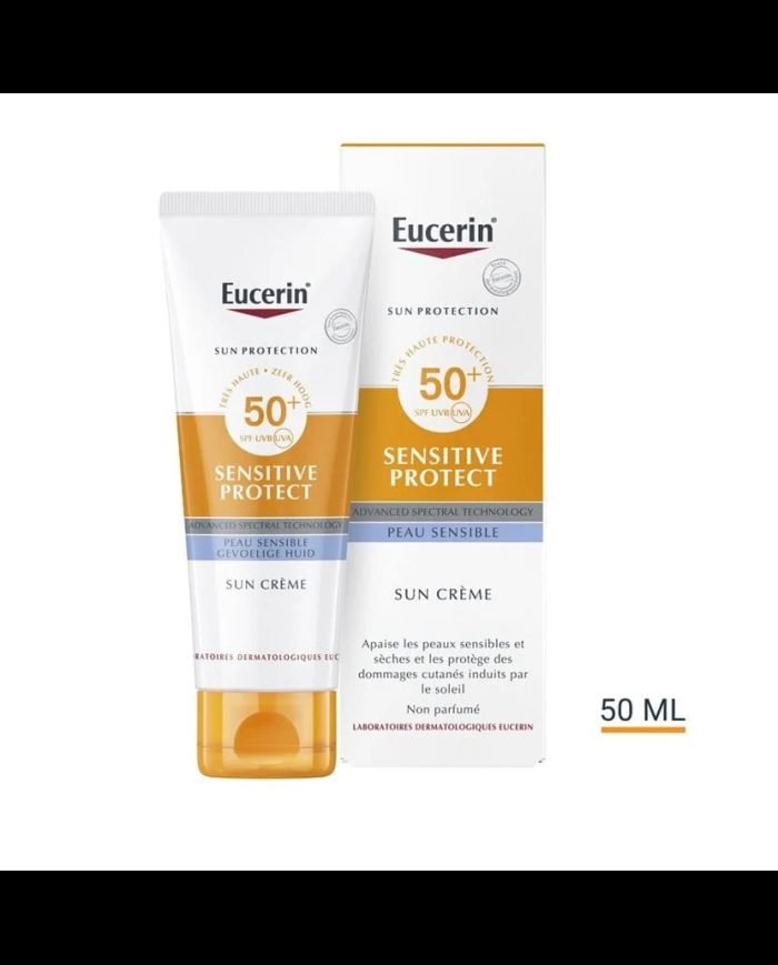 Eucerin Sun Sensitive Protect CrĂšme SPF50+ est bien plus quâun simple Ă©cran solaire : câest une barriĂšre protectrice complĂšte et un soin rĂ©parateur pour les peaux exigeantes.