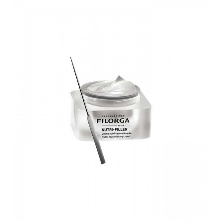 FILORGA NUTRI-FILLER CrĂšme nutri-reconstituante. La crĂšme nutri-reconstituante Nutri-Filler nourrit et rĂ©gĂ©nĂšre en profondeur les peaux exigeantes tout en redessinant les contours du visage. Sa formule Ă base de beurre de karitĂ© et d’huile d’argan apporte confort et souplesse aux peaux les plus sĂšches. Un extrait vĂ©gĂ©tal favorise le renouvellement et la protection du collagĂšne pour une peau protĂ©gĂ©e durablement. De l’algue rouge cible l’ovale du visage et la zone du double menton pour un visage plus jeune. ImmĂ©diatement les peaux les plus sĂšches retrouvent confort et souplesse. Jour aprĂšs jour, la peau est plus dense et l’ovale du visage redessinĂ©. Confort suprĂȘme et fini non-gras.